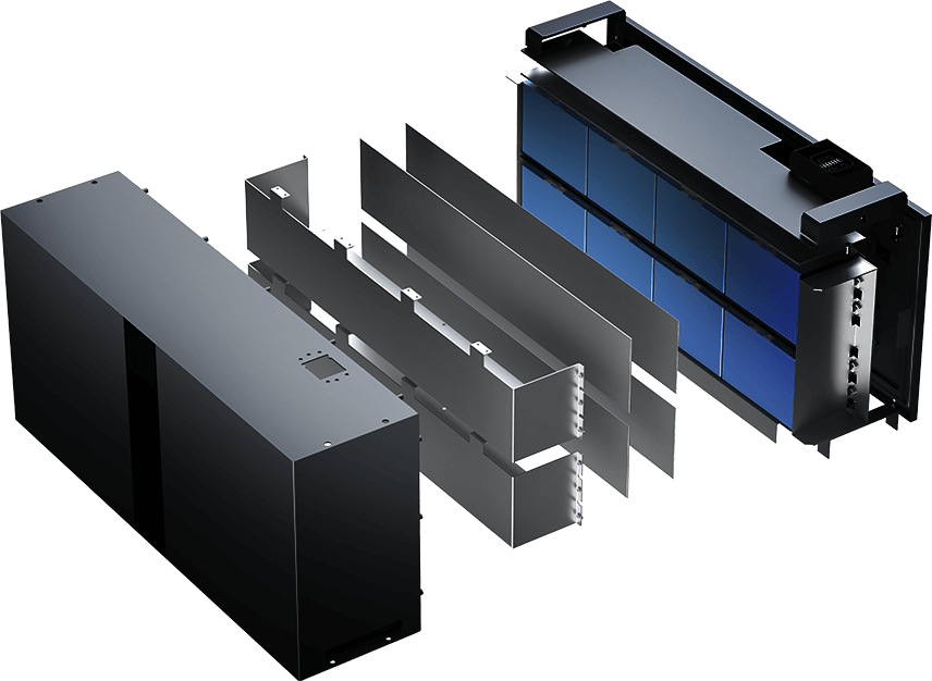 Unser Heimspeichersystem nutzt ein stapelbares, modular aufgebautes Design. Durch die Parallelschaltung der Batterien können Systemspannung und -kapazität flexibel erweitert werden. Es unterstützt die Erweiterung mit mehreren Batterie-Schränken und ist zudem mit gängigen Wechselrichtern kompatibel – für eine echte Plug-and-Play-Installation.